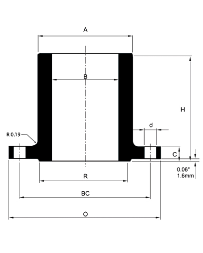 | Crassitudo LABIUM Min (Dimension C) | Omnes magnitudinis NPS XVIII minor 0.120, -Zero NPS XX et maius 0.190, -zero |
